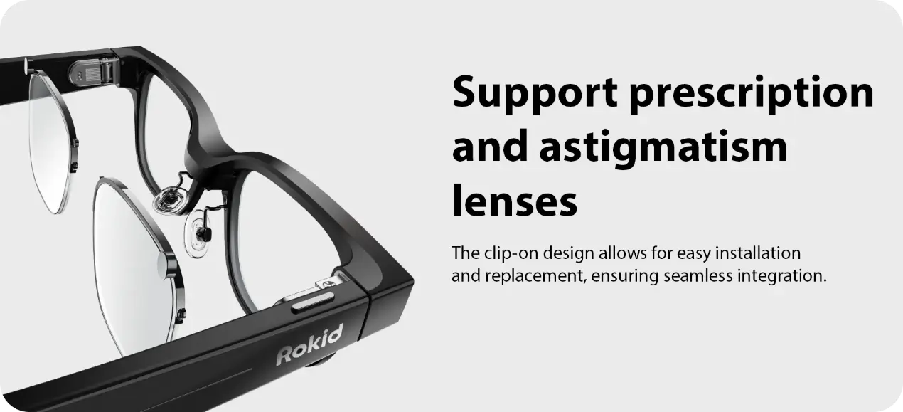 Rokid Ai supports 0.00D to -6.00 diopter adjustment. If your degree of myopia exceeds this range, you can use the Prescription Mount to add on lenses and get a clear image.