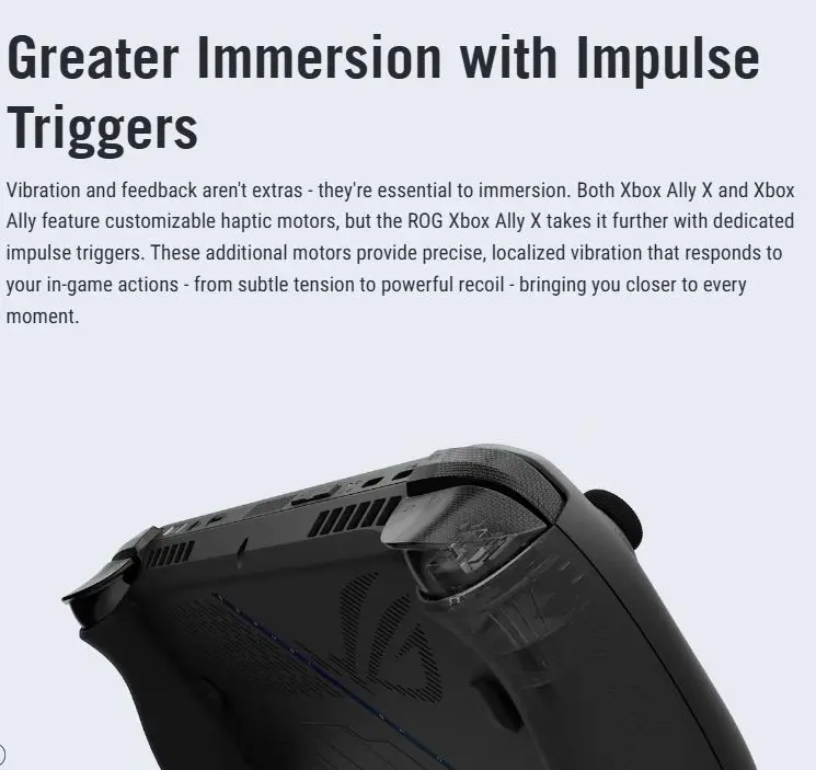 Bringing you the best of all gaming worlds, the ROG Xbox Ally is a powerful, portable PC handheld. Designed for long-term comfort, a console-like user experience, and the full flexibility of Windows 11, the ROG Xbox Ally birngs PC gaming with you anywhere. Bringing you the best of all gaming worlds, the ROG Xbox Ally is a powerful, portable PC handheld. Designed for long-term comfort, a console-like user experience, and the full flexibility of Windows 11, the ROG Xbox Ally birngs PC gaming with you anywhere.